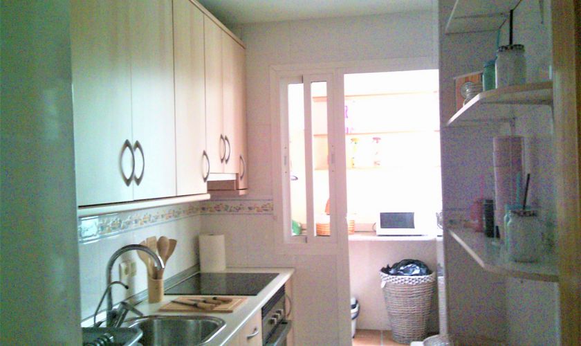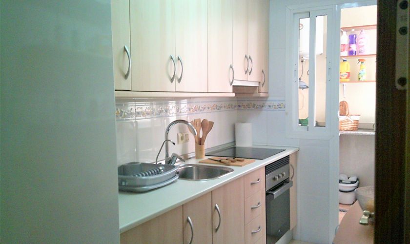COCINA TOTALMENTE AMUEBLADA Y EQUIPADA DE ENSERES DE COCINA, GRAN SALON-COMEDOR CON BALCON Y A/C, BAÑO CON DUCHA, Y LAVADERO