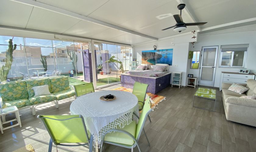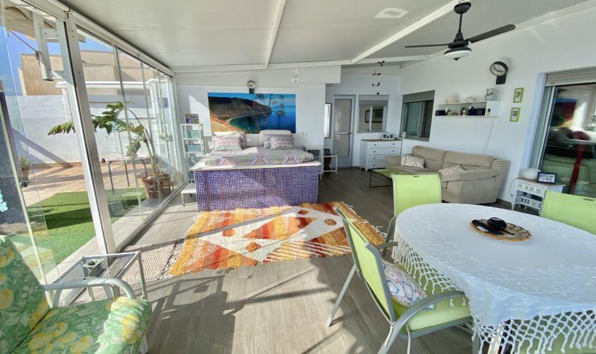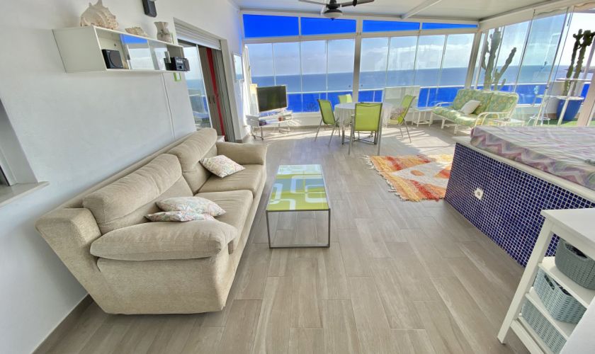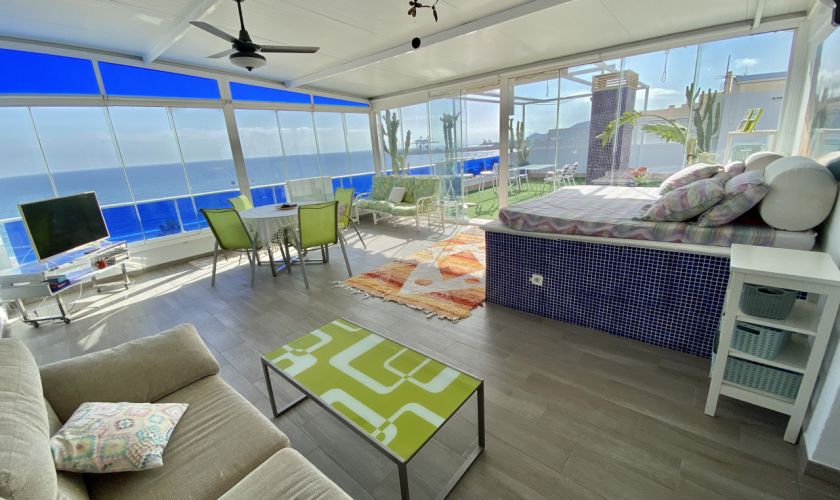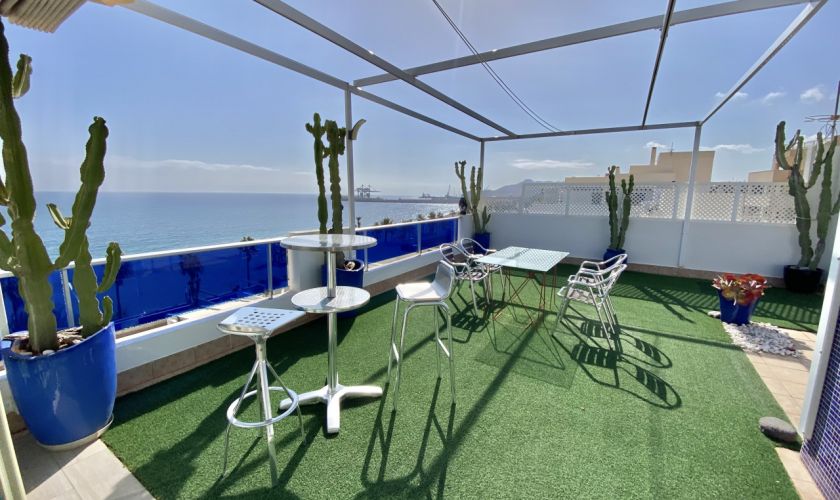 DESDE EL COMEDOR PUEDES ACCEDER A UNA TERRAZA DE UNOS 20 METROS CON VISTAS AL MAR.TAMBIÉN DESDE AHÍ PUEDES ACCEDER A LA OTRA TERRAZA CERRADA CON UNA CAMA Y TELEVISIÓN PARA CENAR EN LAS NOCHES DE VERANO Y DESPERTARTE CON EL SONIDO DE MAR. EN ESA TERRAZA  DE 50 METROS HAY UN DORMITORIO A PARTE CON UN ASEO.