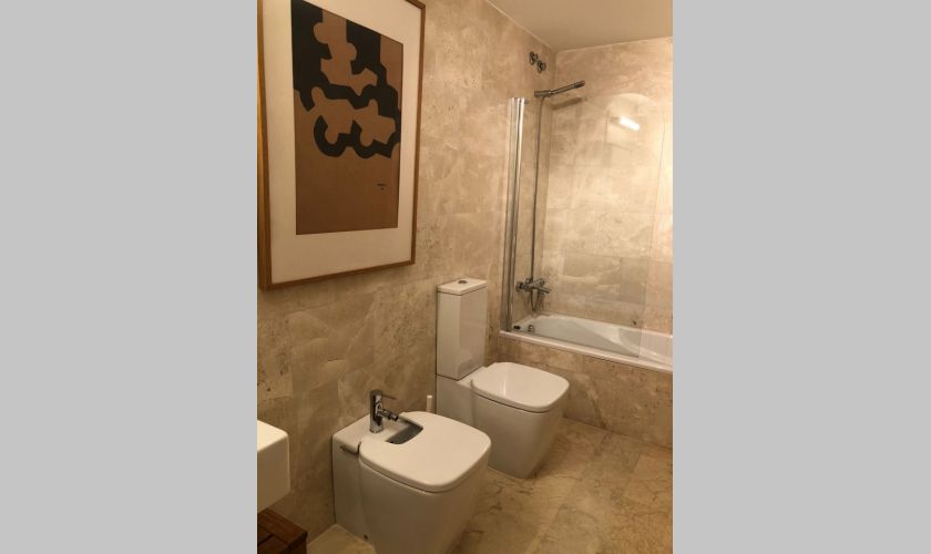 El piso dispone de dos dormitorios con armarios empotrados y dos baños completos, además de un amplio salón-comedor muy luminoso con salida directa a una gran terraza privada con impresionantes vistas al mar, ideal para relajarse o disfrutar de comidas al aire libre.