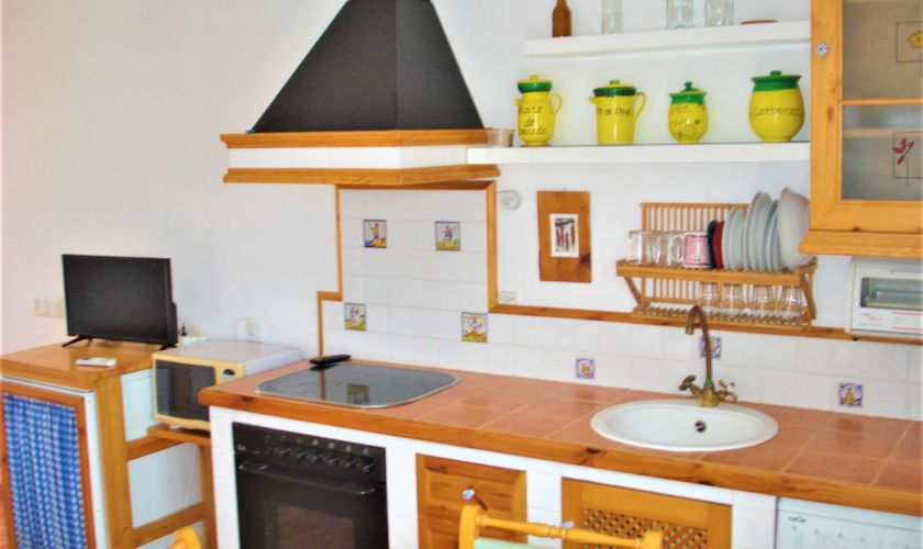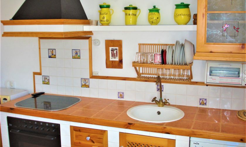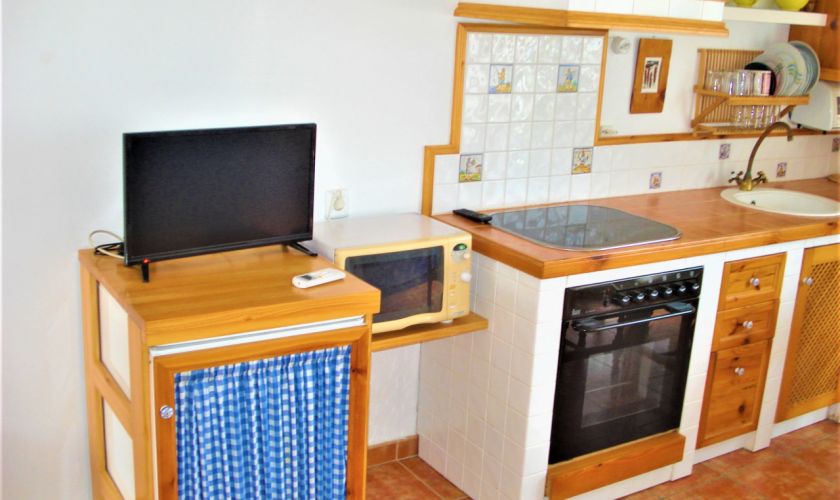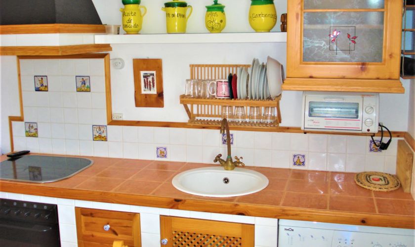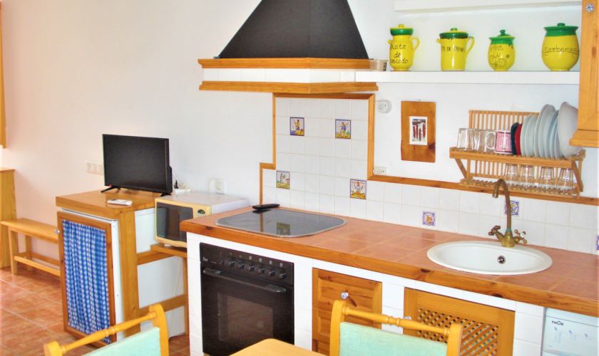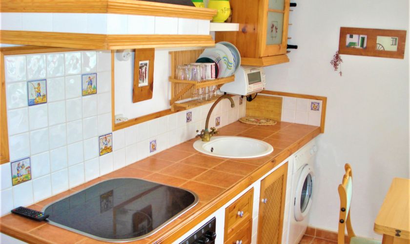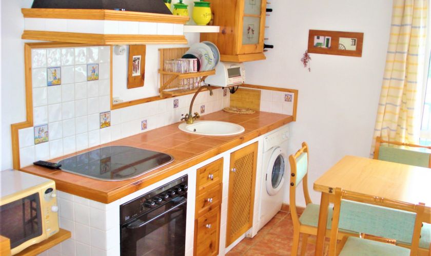 DISPONE DE UNA COCINA COMPLETA EQUIPADA DE MUEBLES Y ELECTRODOMESTICOS.