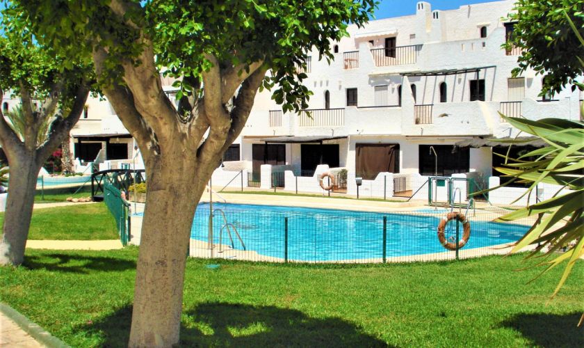 SE VENDE DUPLEX EN EL CENTRO DE AGUAMARGA, EN UNA URBANIZACION CON JARDINES Y PISCINA, EN LA PLANTA BAJA TIENE UN BAÑO, COCINA, LAVADERO, AMPLIO SALON COMEDOR DESDE EL QUE SE SALE A TGRAVES DE UN VENTANAL A UNA TERRAZA DONDE PODRAS DISFRUTAR DE LAS NOCHES DE VERANO, EN LA PLANATA PRIMERA HAY DOS AMPLIOS DORMITORISO Y UN BAÑO, AZOTEA SOLARIUM CON LAS MEJORES VISTAS A LA PISCINA