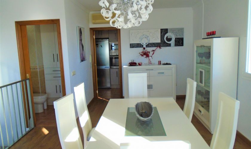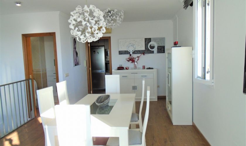 EN PLANTA PRIMERA SE ENCUENTRA UN MARAVILLOSO SALON- COMEDOR CON SUELO DE PARQUET, Y VISTAS AL MAR TIENE SALIDA A UNA PEQUEÑA TERRAZA DONDE SE PUEDE ACCEDER A LA AZOTEA