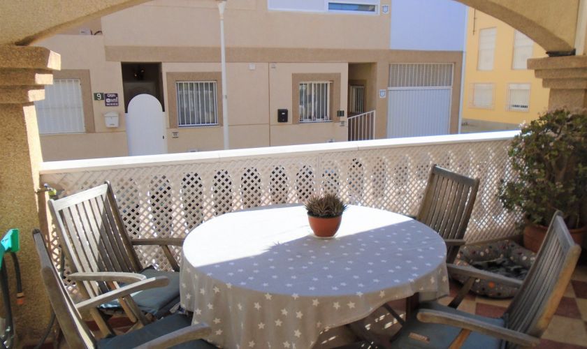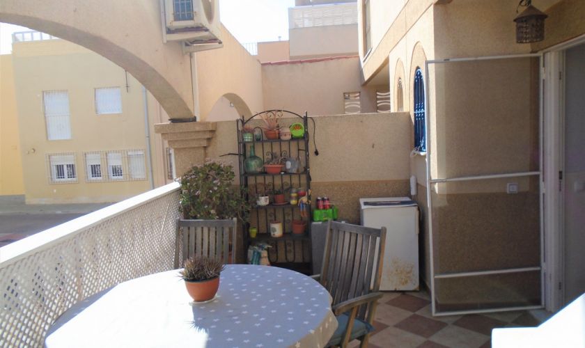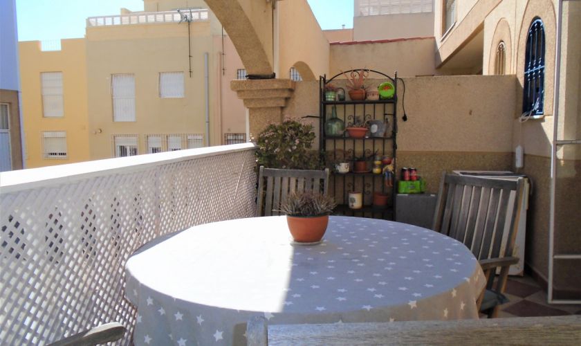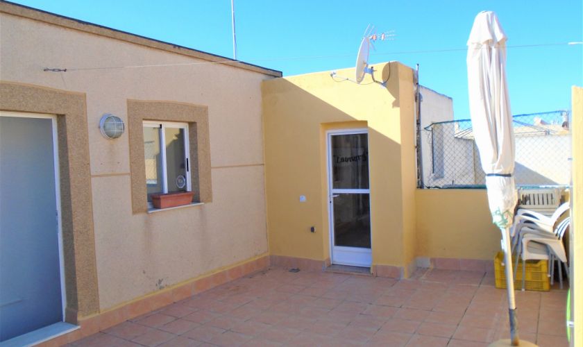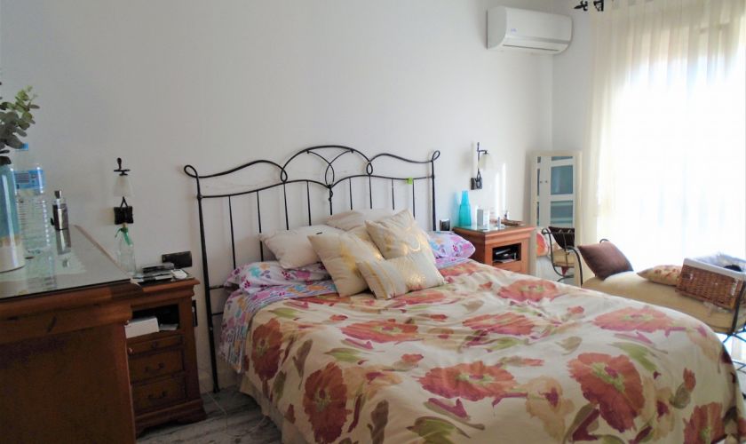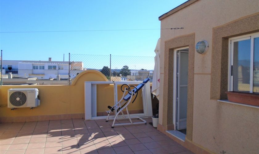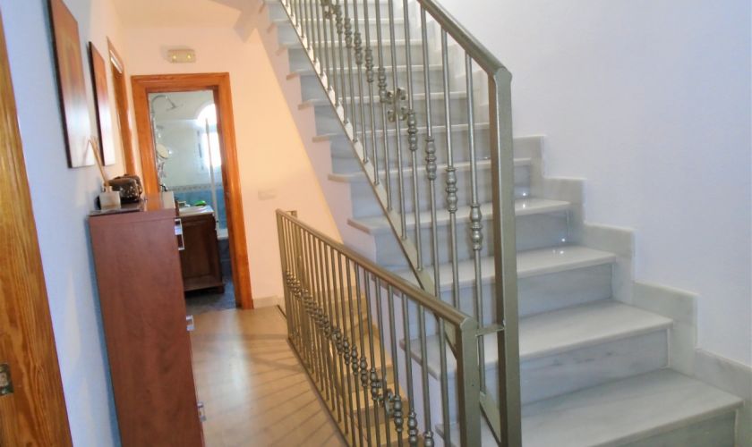 EN PLANTA PRIMERA HAY TRES AMPLIOS DORMITORIOS CON SUELO DE TARIMA CON A/C Y UN BAÑO HAY UNA ESCALERA QUE ASCENDE A LA AZOTEA DONDE SE PUEDE VER LA PLAYA DE RETAMAR, Y TIENE UN CASETON DE 12 METROS QUE SE UTILIZA DE LAVADERO ,TIENE A/C