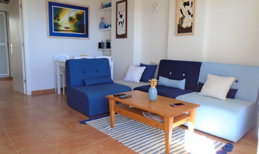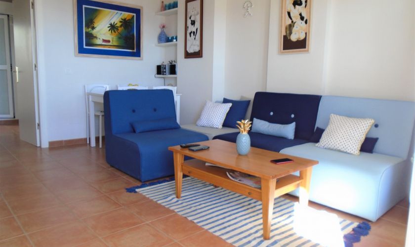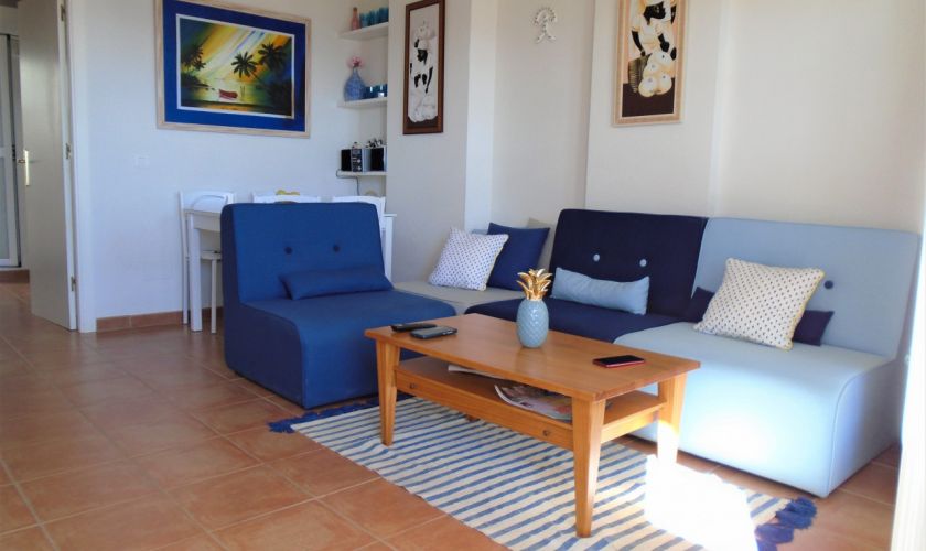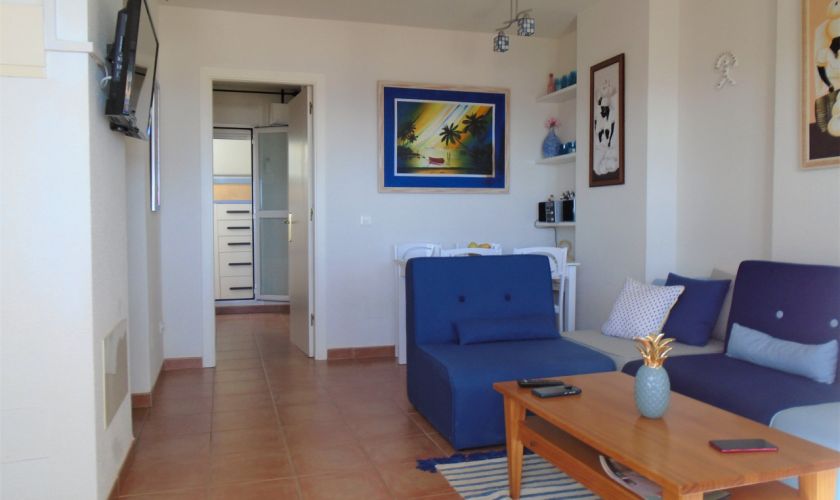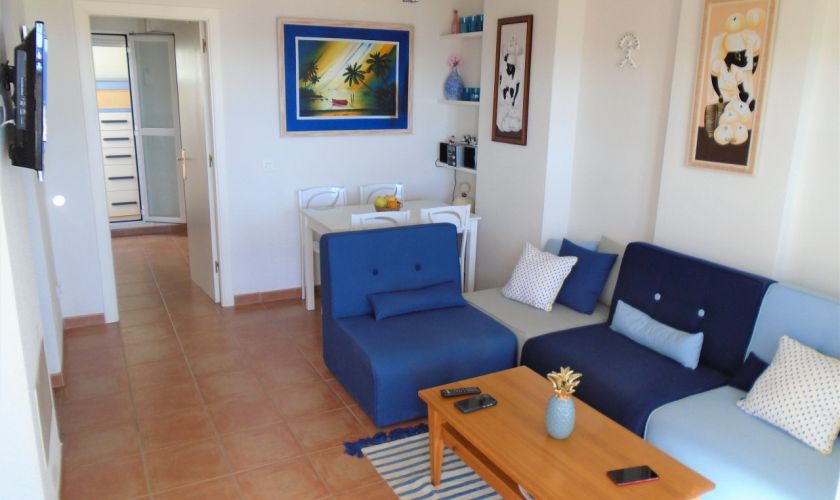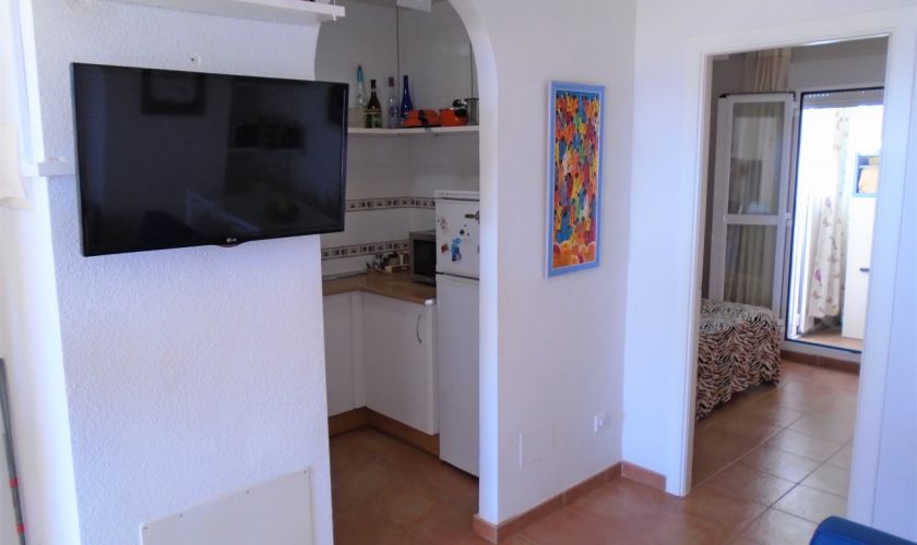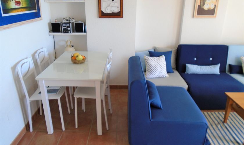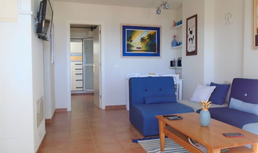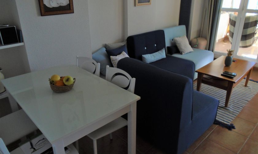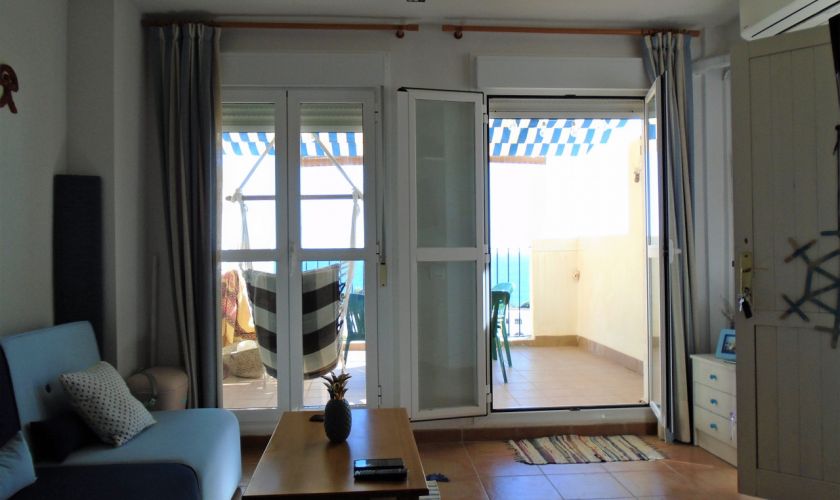 SE DISTRIBUYE DE LA SIGUIENTE MANERA , SALOM-COMEDOR CON SALIDA A UNA TERRAZA  DE UNOS 12 METROS APROXIMADOS CON VISTAS AL MAR Y A/C, TIENE DOS DORMITORIOS Y UNO DE ELLOS CON A/C
