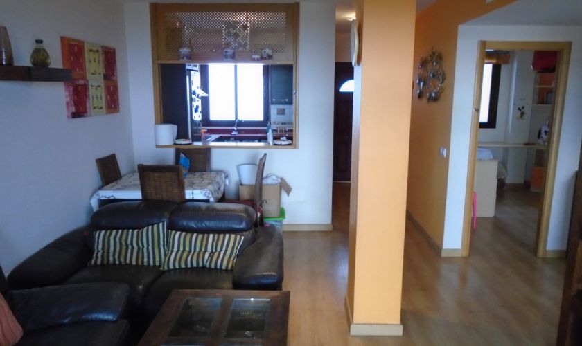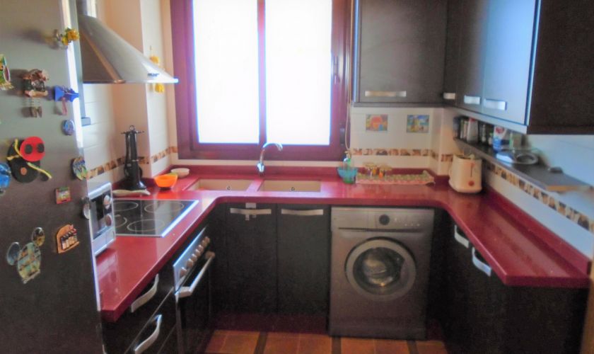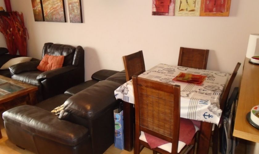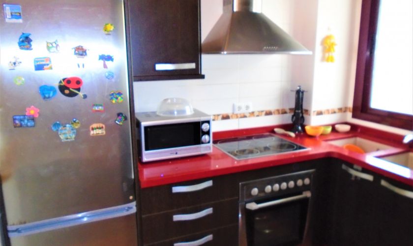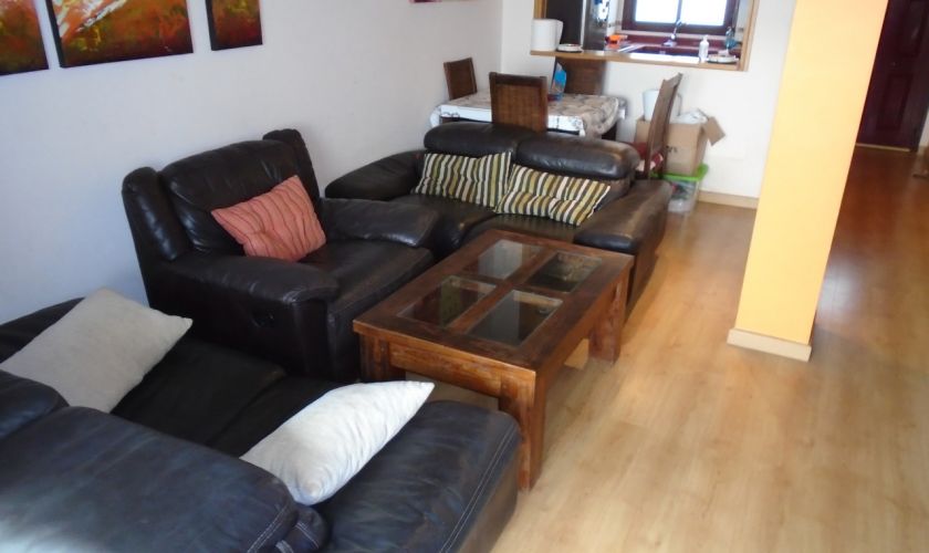 SALON-COMEDOR CON SOFAS DE PIEL, MESA Y SILLAS PARA CUATRO COMENSALES Y COCINA TOTALMENTE EQUIPADA DE ENSERES, Y ELECTRODOMESTICOS LAVAVAJILLAS, BATIDORA, MICROONDAS...