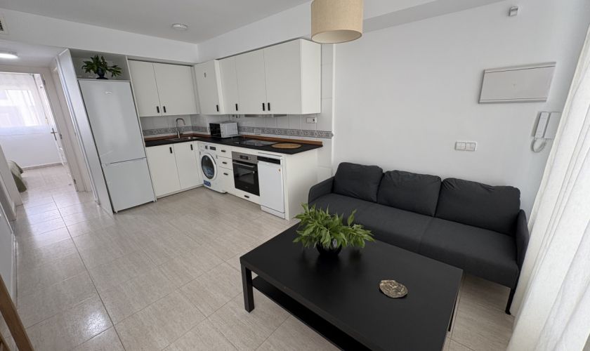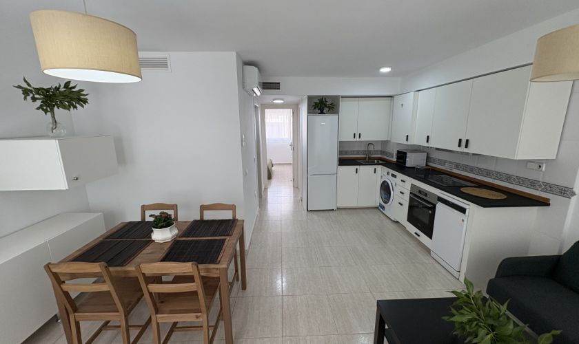 Cuenta con 2 habitaciones, 1 baño completo, cocina totalmente equipada, salón luminoso y una terraza de 8 m² con vistas laterales al mar, perfecta para relajarte o disfrutar de las puestas de sol.