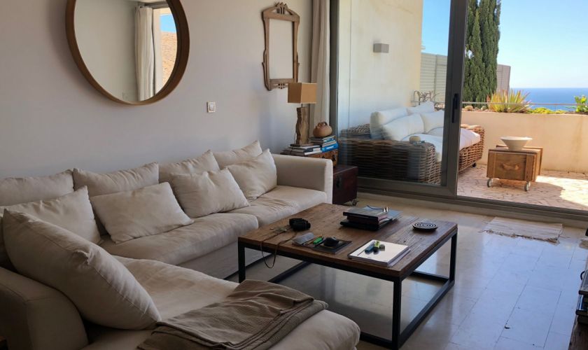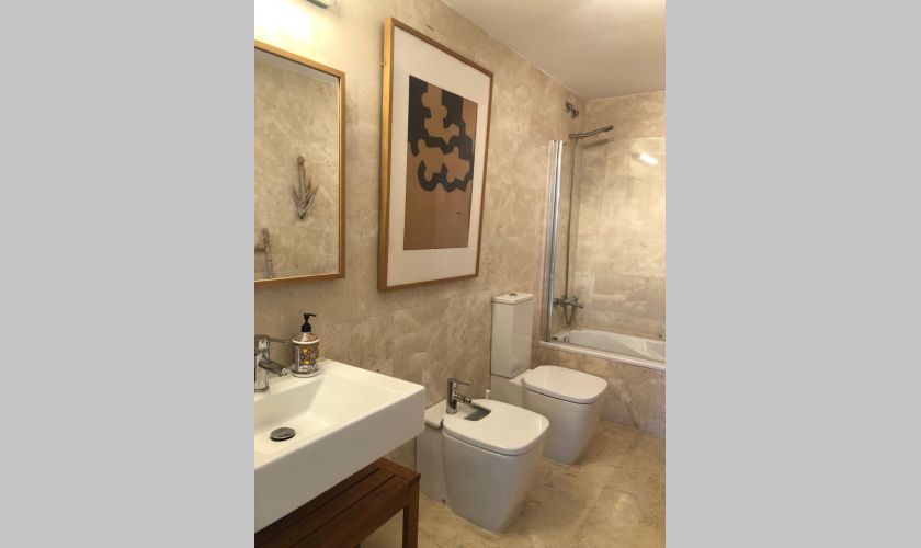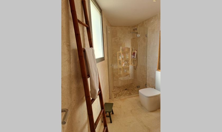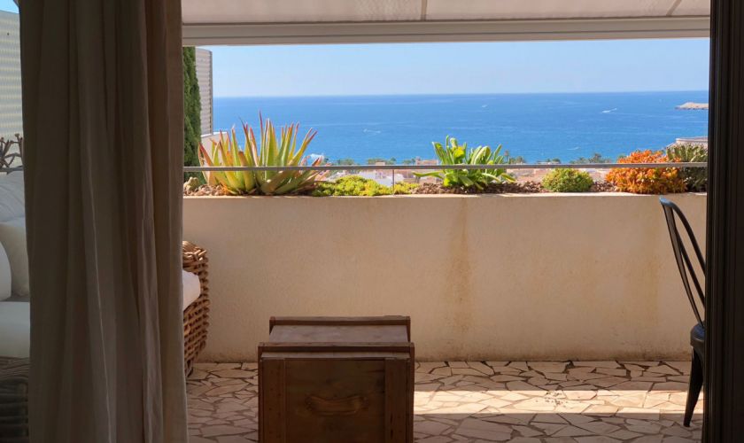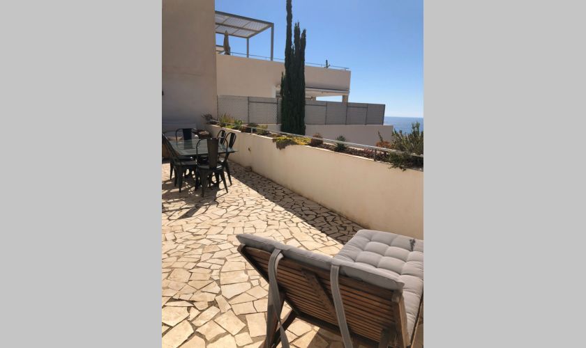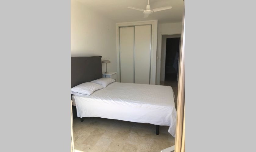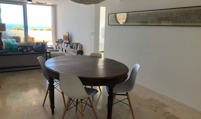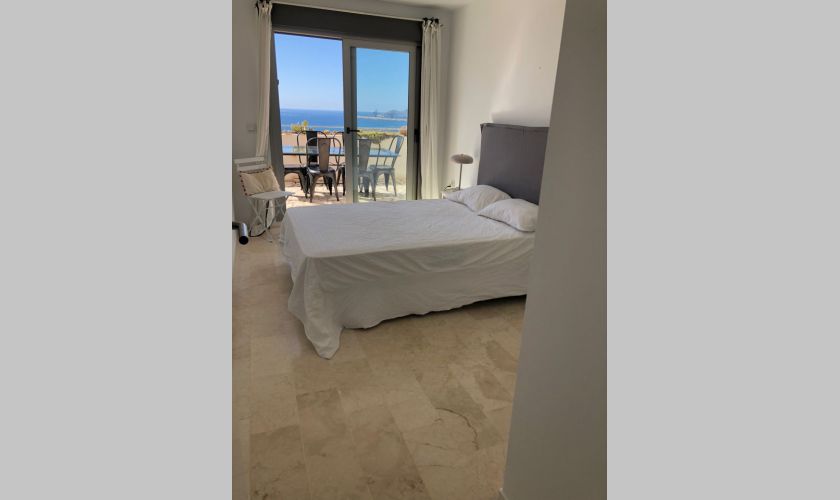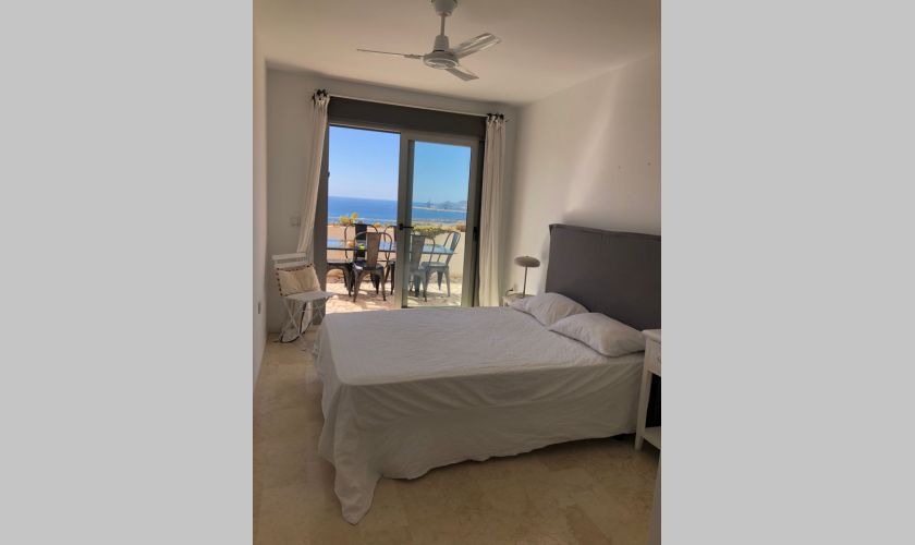 El piso dispone de dos dormitorios con armarios empotrados y dos baños completos, además de un amplio salón-comedor muy luminoso con salida directa a una gran terraza privada con impresionantes vistas al mar, ideal para relajarse o disfrutar de comidas al aire libre.