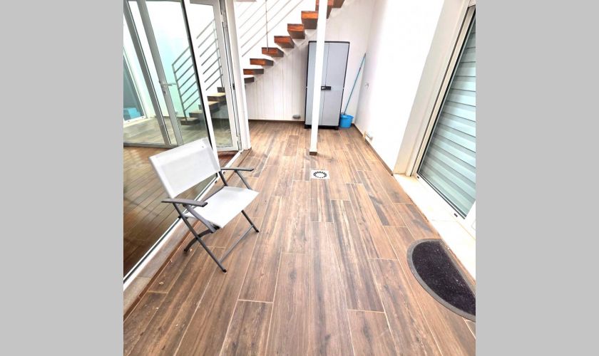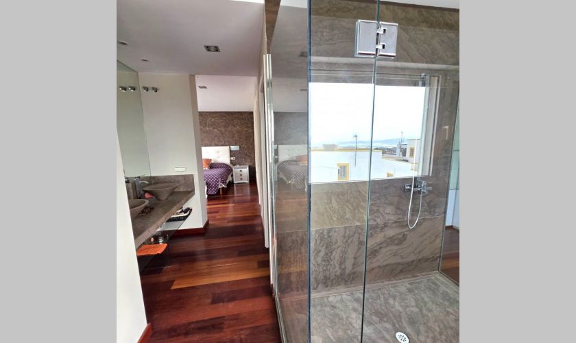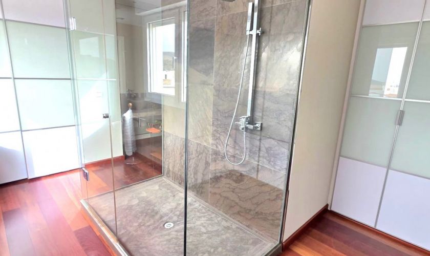 Planta superior: impresionante dormitorio en suite con vestidor y ducha, además de dos terrazas privadas de aproximadamente 25 m² y 10 m², perfectas para relajarse al aire libre.