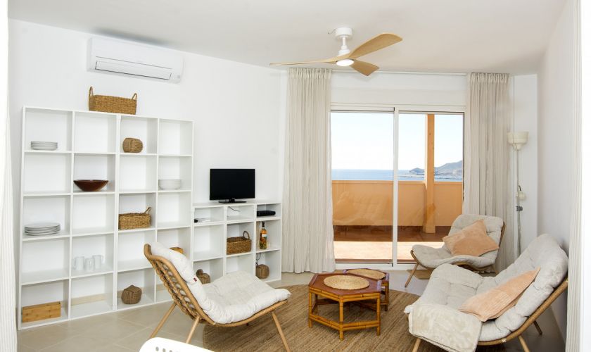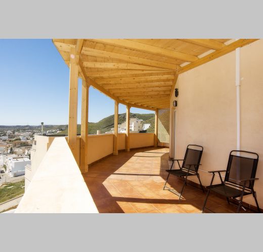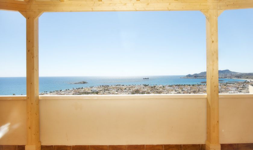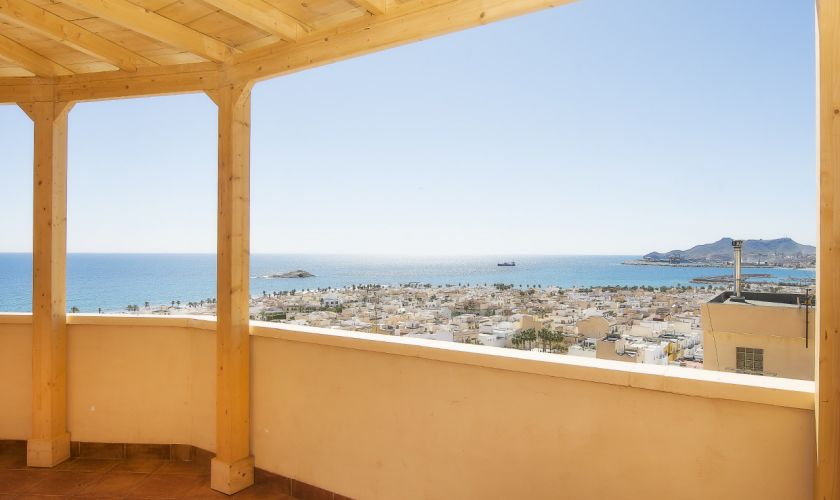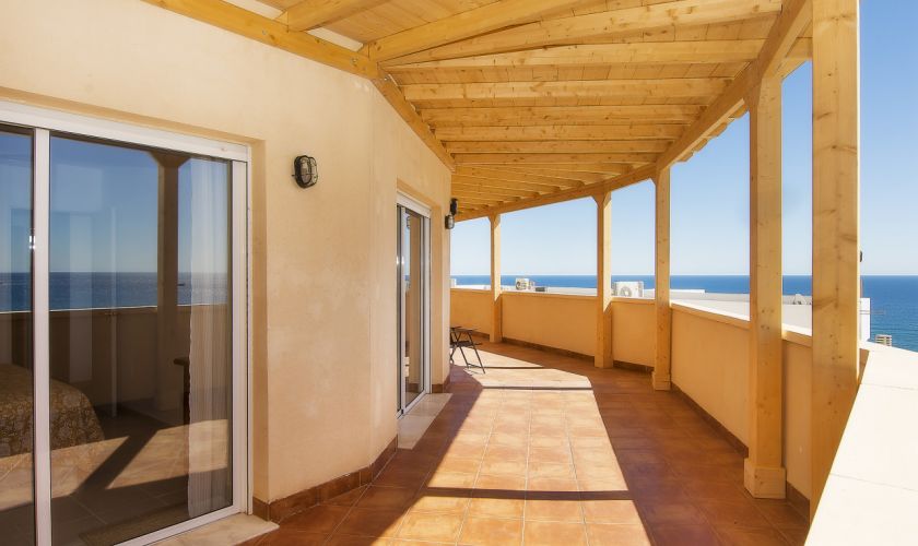 Su gran terraza de 52,50 metros cuadrados es, sin duda, la protagonista: cuenta con una preciosa pérgola de madera que la rodea, creando un espacio perfecto para disfrutar del aire libre, reuniones, cenas al atardecer o simplemente relajarse contemplando el mar.
