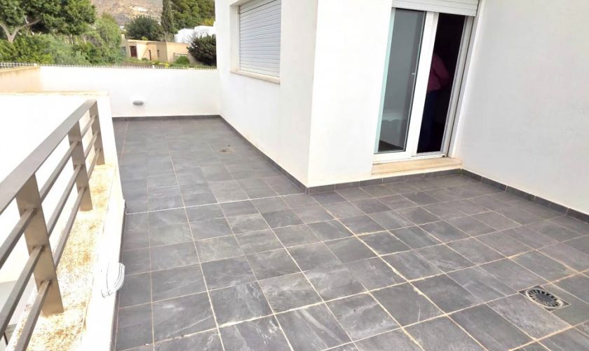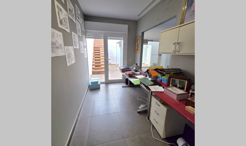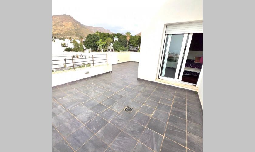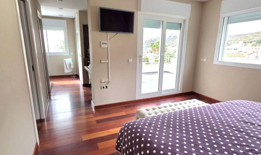 Planta superior: impresionante dormitorio en suite con vestidor y ducha, además de dos terrazas privadas de aproximadamente 25 m² y 10 m², perfectas para relajarse al aire libre.