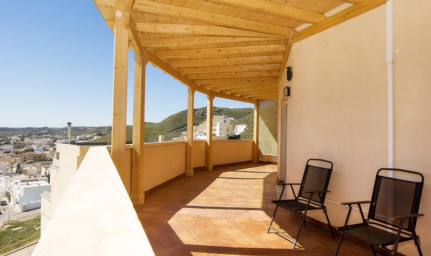 Su gran terraza de 52,50 metros cuadrados es, sin duda, la protagonista: cuenta con una preciosa pérgola de madera que la rodea, creando un espacio perfecto para disfrutar del aire libre, reuniones, cenas al atardecer o simplemente relajarse contemplando el mar.